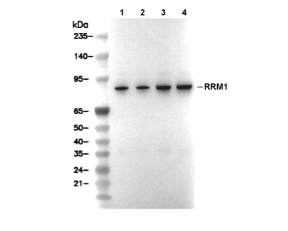 特异性 RRM1 Antibody [H3C10] 可检测内源性 RRM1 总蛋白水平。