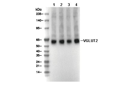 VGLUT2 Antibody [J20C3] 可识别内源性总 VGLUT2 蛋白水平。